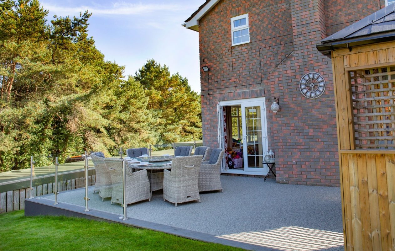 A resin-bound patio is a permeable paving solution that consists of aggregated stones and resin. It’s a weather resistant and durable surface material that does not crack.